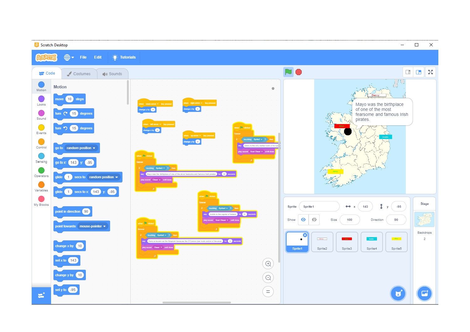 P6/7 made fact-based games about the counties of Ireland using Scratch 3.0.